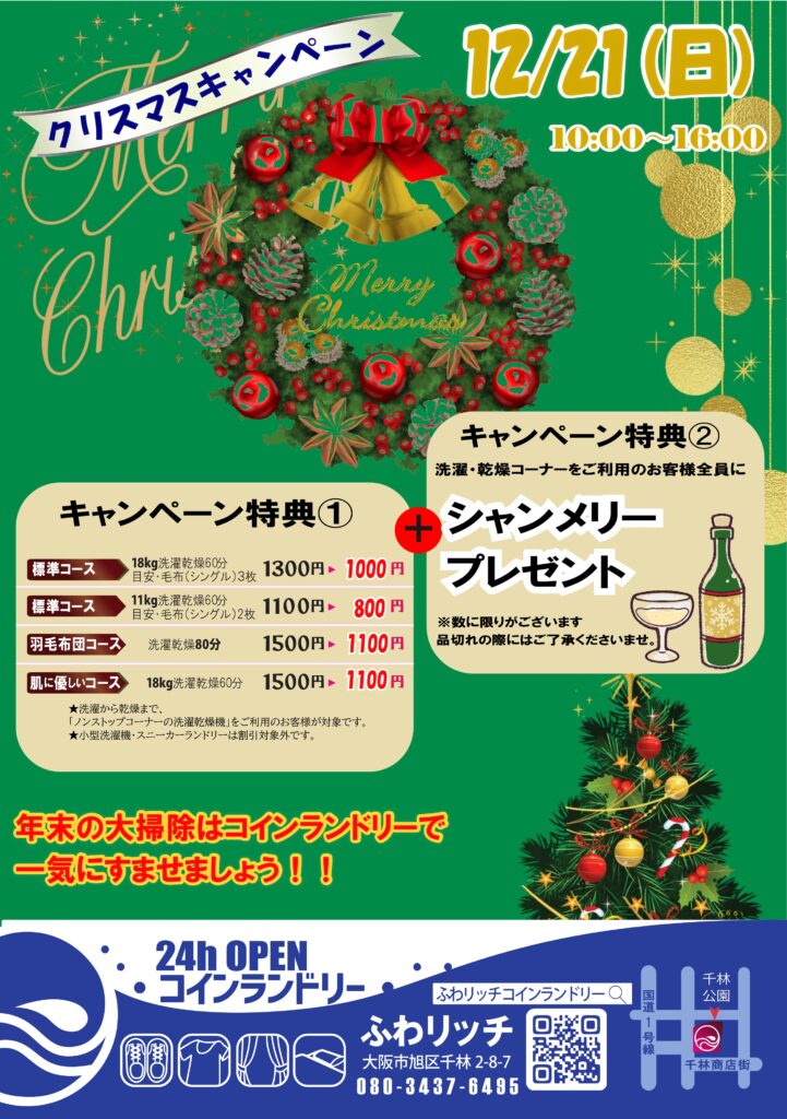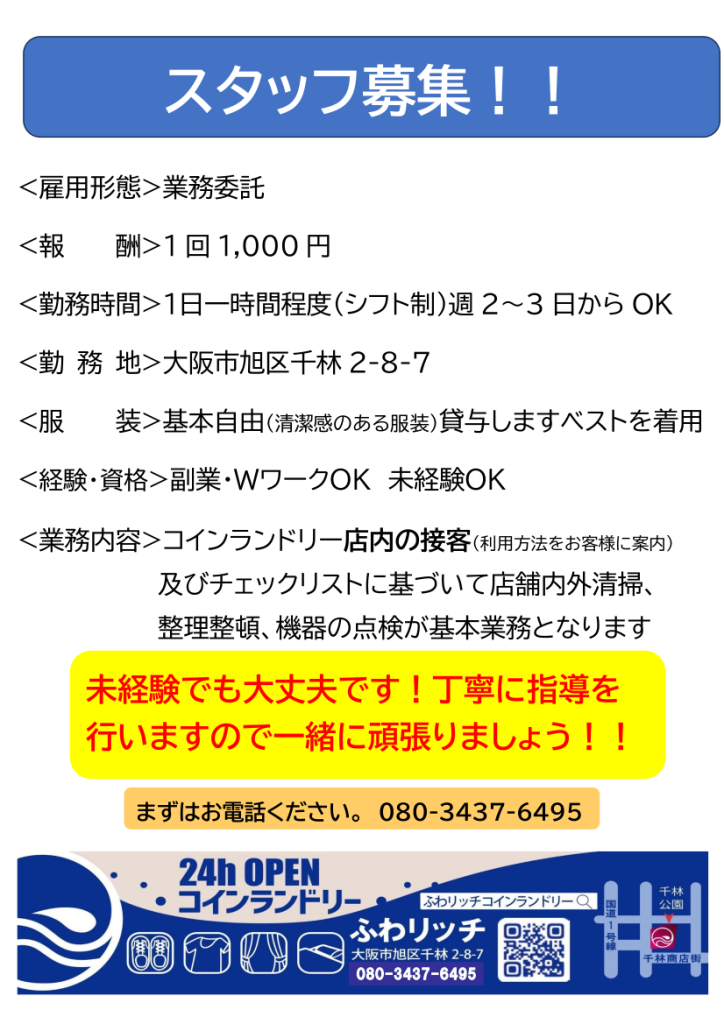 大阪市旭区千林公園の正面に最新大型洗濯乾燥機完備のコインランドリーが誕生しました。
