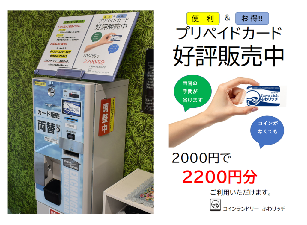 当ランドリーではお得なプリペイドカードも販売しております。